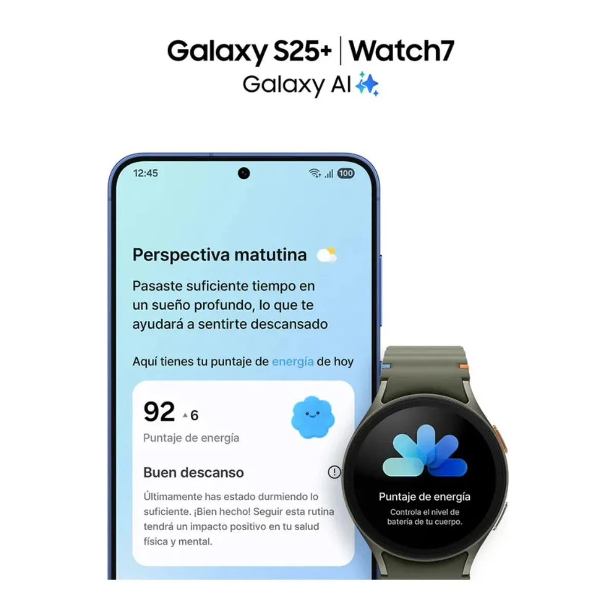El dispositivo integra una batería de 5,000 mAh, que asegura una autonomía prolongada durante todo el día, con soporte para carga rápida de 45W, carga inalámbrica y compatibilidad con carga inversa para otros dispositivos. El diseño ha sido refinado, con bordes planos y un cuerpo más delgado y ligero que ofrece un agarre cómodo y elegante. El Galaxy S25+ ejecuta Android 15 de fábrica y viene equipado con nuevas funciones de inteligencia artificial para optimizar el rendimiento, la cámara y la personalización del dispositivo.