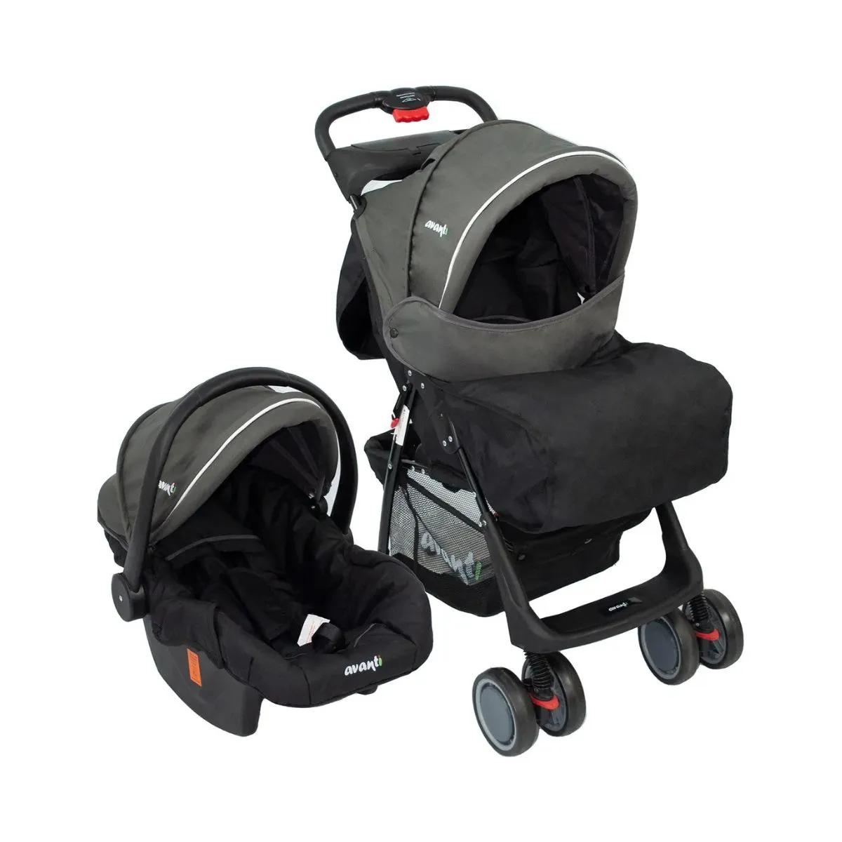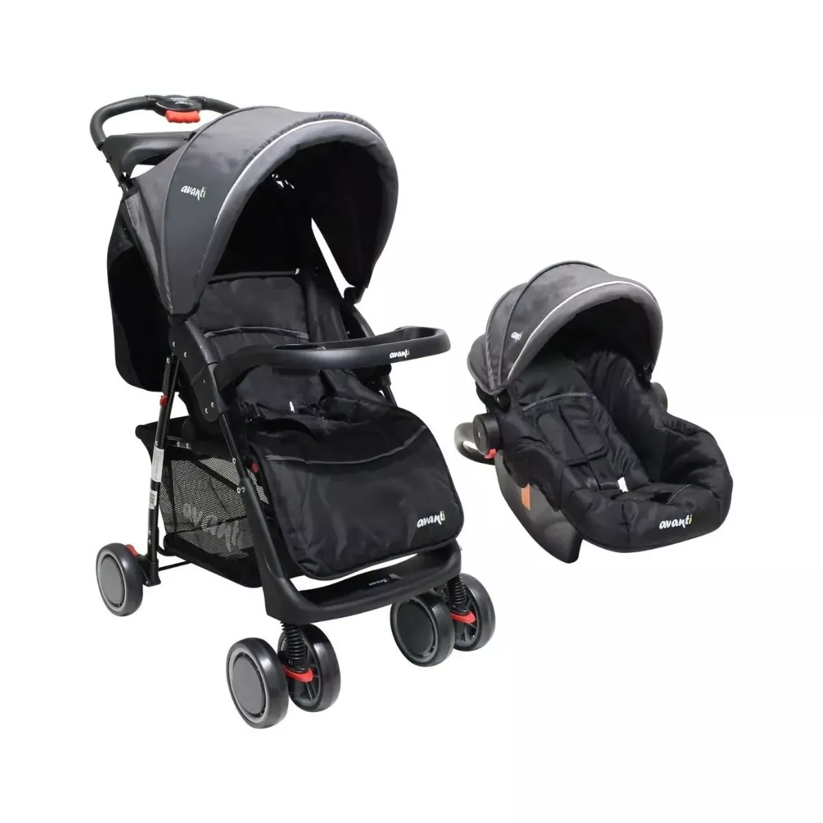 Cochecito Cuna Bebé Travel System Avanti Con Huevito Apto 0+ meses. Cinturón de seguridad de 3 puntos. Asiento reclinable en 3 posiciones. Doble Bandeja. Ruedas todo terreno, delanteras móviles o fijas, traseras con freno. Amplio canasto porta objetos. Butaquita para el auto, encastrable en el cochecito. Travel System: Este modelo incluye la butaquita para el auto. Butaquita: La butaquita se puede utilizar como mecedora o dejarla fija sobre la mesa fijando el movimiento con la rotación del manillar. Reclinado: El asiento se reclina en 3 posiciones. Bandejas: Incluye una bandeja frontal con posavaso para el bebé, y una bandeja trasera para portar el agua de los padres y algunos de sus objetos. Tamaño del coche: Medidas abierto: 105 x 90 x 60 cm. Peso y soporte: El coche resiste hasta 18 kg. El coche pesa 11 kg. La butaquita soporta hasta 13 kg. La butaquita pesa 3 kg.