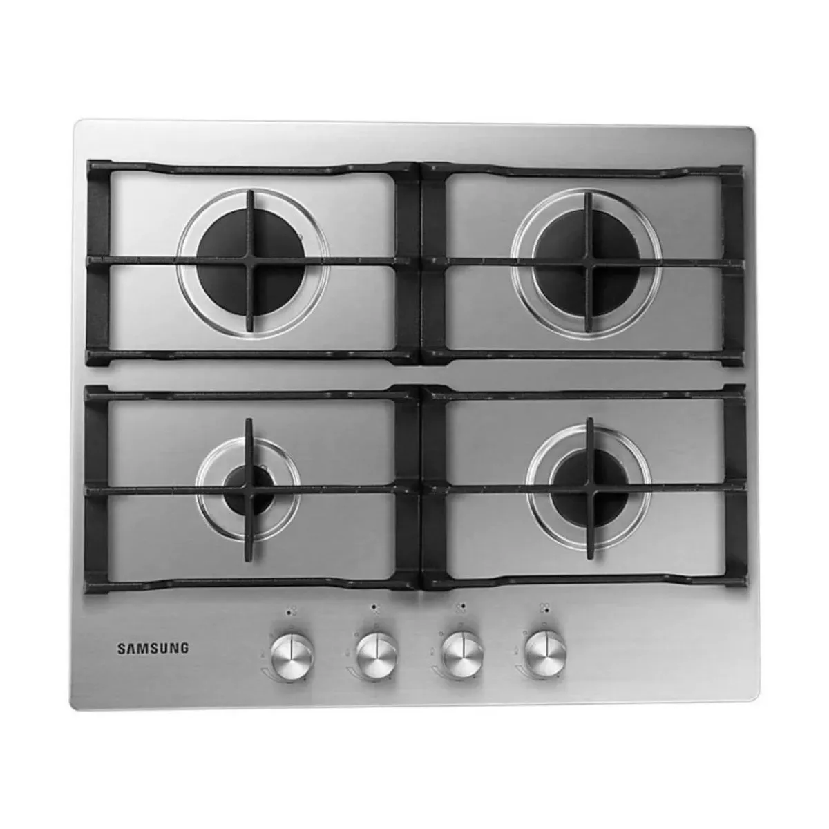Anafe a Gas Samsung 4 Hornallas Modelo NA64H3010AS CARACTERÍSTICAS • Rejilla: Hierro fundido • Superficie: Acero inoxidable • Tipo: (gas) • Número de quemador: 4 EA • Tipo: R (2) / SR (1) / A (1) ENERGÍA • Potencia total (gas): 9.6 kW • Rápido: 3,3 kW • Semi-rápido: 2,0 kW • Auxiliar: 1,0 kW DIMENSIONES DE PRODUCTO • Ancho [cm]: 60 • Alto [cm]: 9,5 • Prof. [cm]: 51 • Peso bruto: 13,3 kg • Peso (neto): 9.6kg