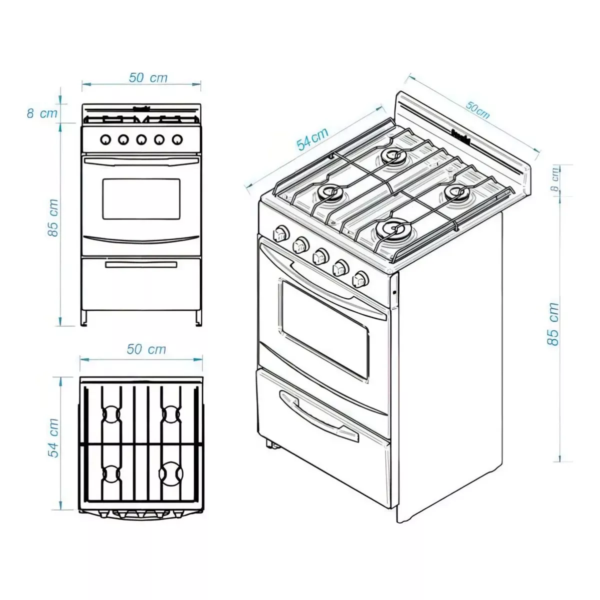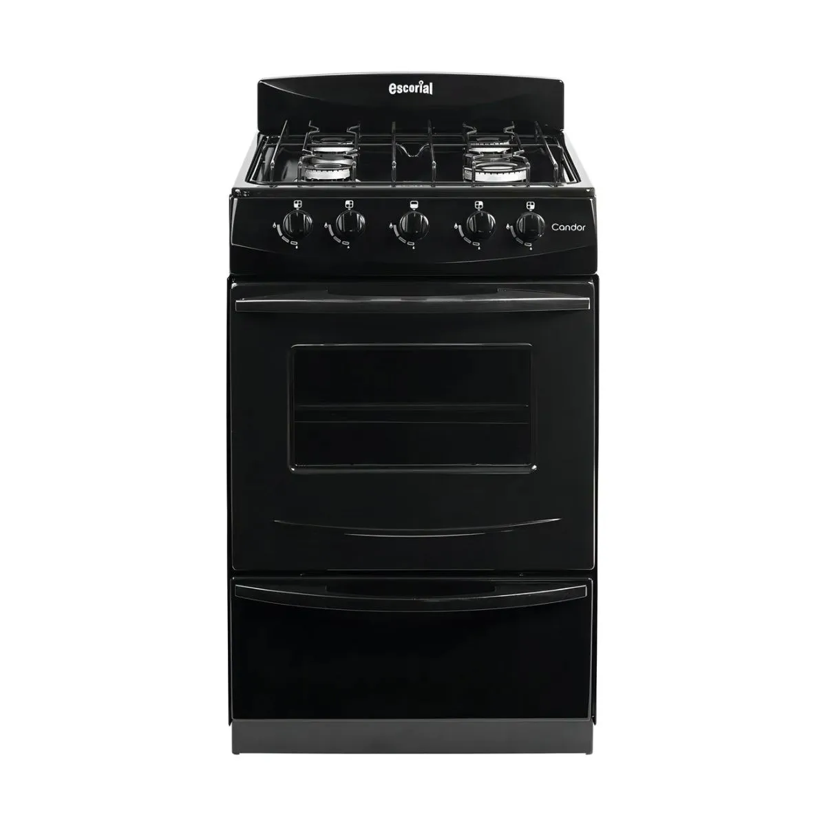 CANDOR BLACK Color: Negro Medidas: 95cm (Al) x 51cm (An) x 60 cm (Pr) Horno con visor - Fácil limpieza. Sistema: Gas Licuado. Peso: 26,5 kg. Superficies exteriores e interior del horno totalmente enlozados en polvo electrostático de fácil limpieza. 4 hornallas (3 medianas y una grande). Válvula de seguridad en hornallas y horno. Quemadores de aluminio con tapa de acero esmaltada. Respaldo extraíble. Puerta de horno con bisagra desmontable. Cajón parrilla con puerta rebatible. Asadera. Eficiencia energética: Clase A.