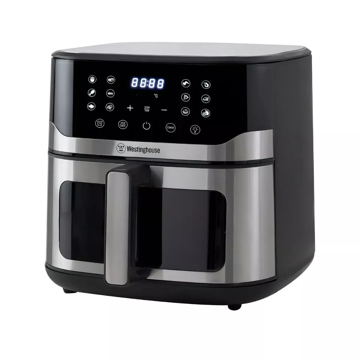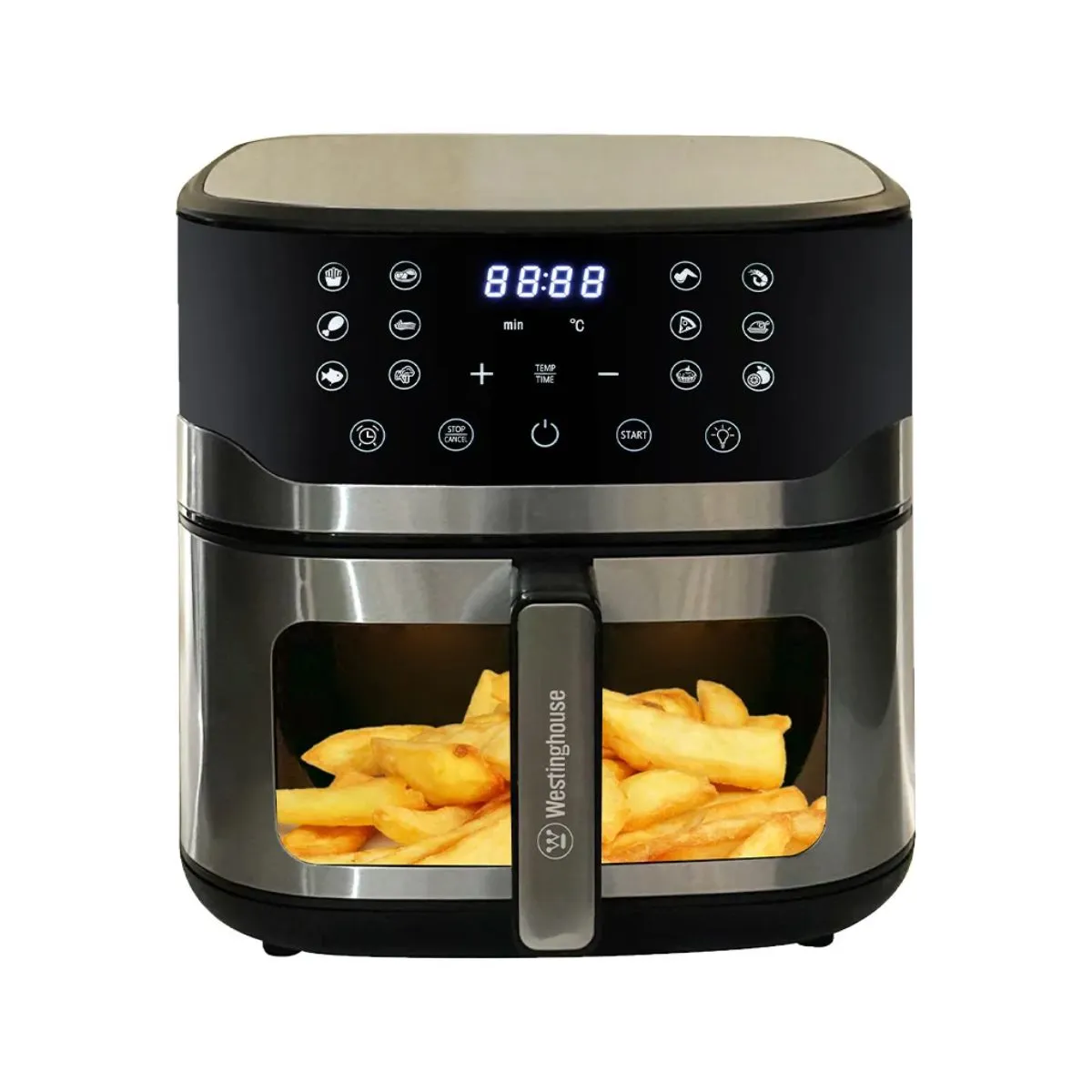 Marca: Westinghouse - Modelo: AFR-1802 - CONTROL DIGITAL - Potencia: 1800W - Capacidad: 10 litros - 12 funciones de cocción automática (papas fritas, bifes, patas de pollo, vegetales, parrilla, pescado, langostinos, alitas de pollo, pollo asado, pizza, frutas secas y tortas). - Circulación de aire caliente - No utiliza aceite - Sin humo ni olores - Temporizador - Apagado automático - Luz indicadora - Manija fría al tacto - Acero inoxidable - Pantalla led - Control de temperatura - Medidas externas: 30x30x30cm aproximadamente - Medidas del cesto: 28x28x14cm aproximadamente